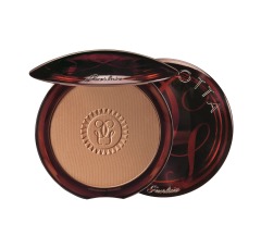 Die unverwechselbare Guerlain-Kompaktierung. Wie ein in den Puder geprägtes Siegel hebt sich in der Mitte des Tiegels das legendäre Sonnenmotiv mit Doppel-G von Guerlain ab. Raffiniert!"